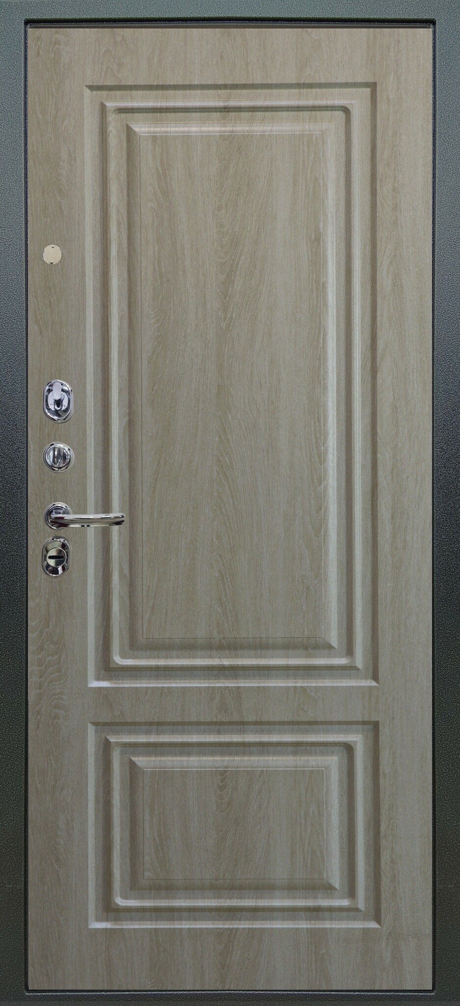 Имеет высокую прочность, благодаря толщине стали 1,8 мм. Оснащена двумя надежными замками, минимум один из которых имеет высший класс взломостойкости по ГОСТ 5089-2003 (4 класс). Есть врезная броненакладка, защищающая цилиндровый замок от высверливания. Она утоплена в дверное полотно, поэтому ее практически невозможно сбить. Есть ночная задвижка — дополнительная защита от взлома. Никто не сможет зайти, вскрыв замок, когда вы дома.