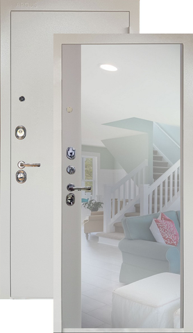 Теплая дверь входная Аргус Люкс 3К Магнум зеркало, 2 замка, 1,8 мм металл, (снежно белый+белый софт)