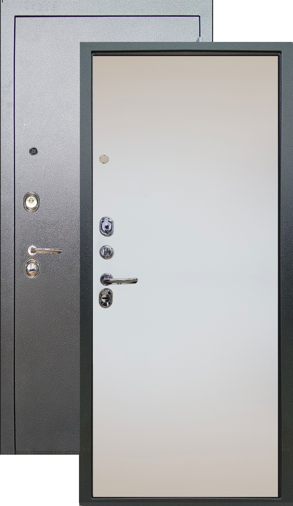 Имеет высокую прочность, благодаря толщине стали 1,8 мм. Оснащена двумя надежными замками, минимум один из которых имеет высший класс взломостойкости по ГОСТ 5089-2003 (4 класс). Есть врезная броненакладка, защищающая цилиндровый замок от высверливания. Она утоплена в дверное полотно, поэтому ее практически невозможно сбить. Есть ночная задвижка — дополнительная защита от взлома. Никто не сможет зайти, вскрыв замок, когда вы дома.