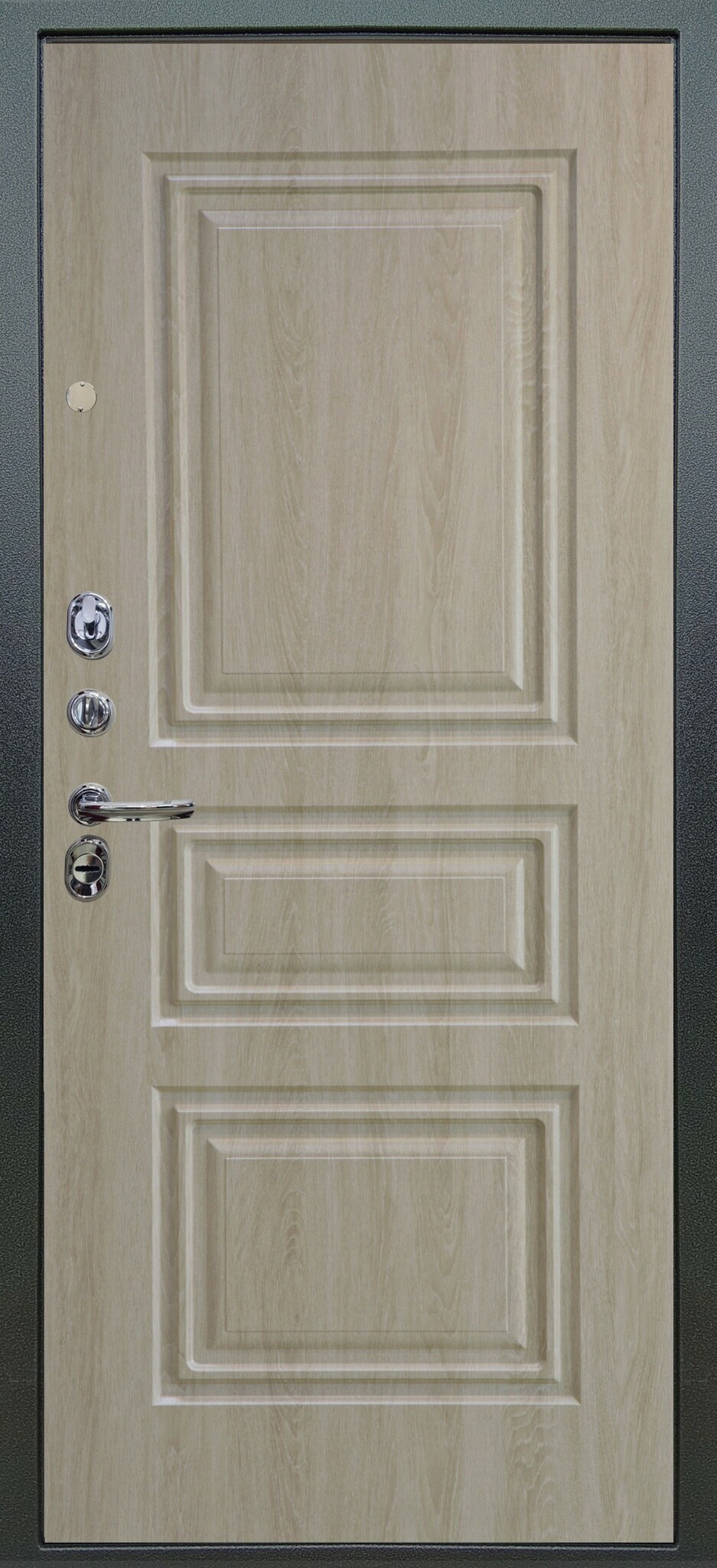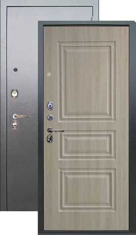 Имеет высокую прочность, благодаря толщине стали 1,8 мм. Оснащена двумя надежными замками, минимум один из которых имеет высший класс взломостойкости по ГОСТ 5089-2003 (4 класс). Есть врезная броненакладка, защищающая цилиндровый замок от высверливания. Она утоплена в дверное полотно, поэтому ее практически невозможно сбить. Есть ночная задвижка — дополнительная защита от взлома. Никто не сможет зайти, вскрыв замок, когда вы дома.