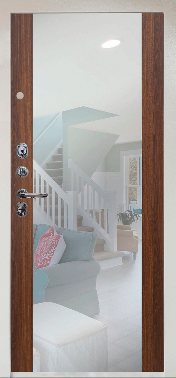 Повышенной надежности российская сейф-дверь с большим зеркалом на внутренней панели. Прекрасно подойдет для установки в квартиру. Солидная модель, которая хорошо защитит и подчеркнет статус.