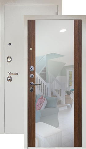 Теплая дверь входная Аргус Люкс 3К Вояж зеркало, 2 замка, 1,8 мм металл, (снежно белый+коньяк статус)