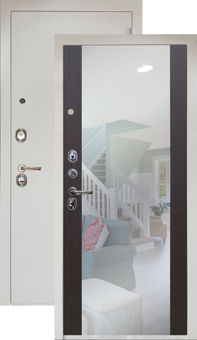 Теплая дверь входная Аргус Люкс 3К Вояж зеркало, 2 замка, 1,8 мм металл, (снежно белый+венге)