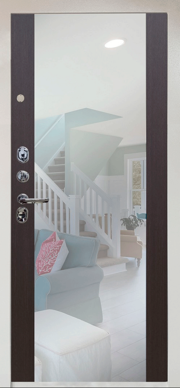 Повышенной надежности российская сейф-дверь с большим зеркалом на внутренней панели. Прекрасно подойдет для установки в квартиру. Солидная модель, которая хорошо защитит и подчеркнет статус.