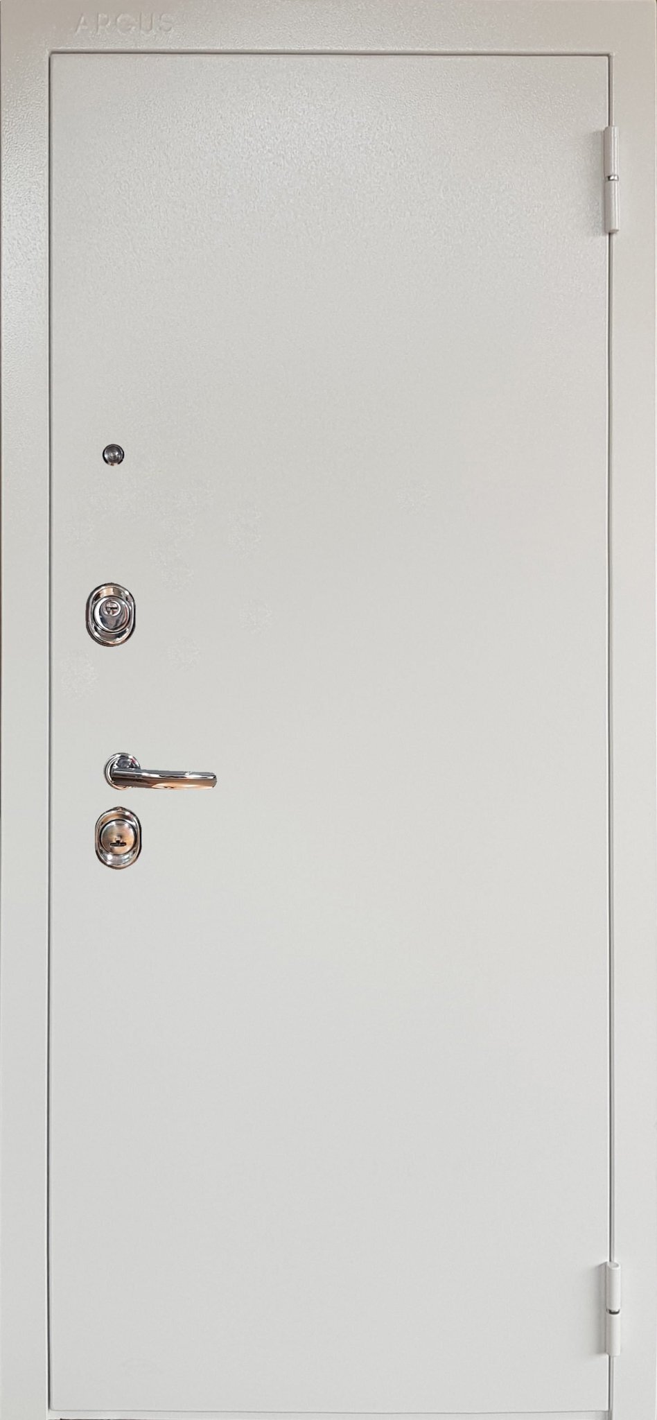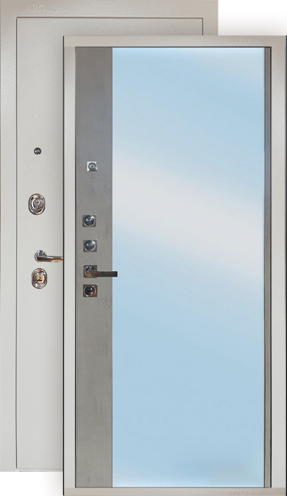 Теплая дверь входная Алекс дорс Берлога Тринити Х 10 Магнум зеркало, 2 замка, 1,7 мм металл, (белая шагрень+силк маус)