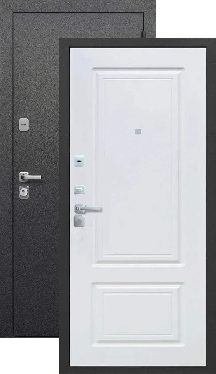 Дверь имеет хорошую прочность из-за толщины металла 1,2 мм. Оснащена двумя надежными замками, минимум один из которых имеет высший класс взломостойкости по ГОСТ 5089-2003 (4 класс). Есть врезная броненакладка, защищающая цилиндровый замок от высверливания. Она утоплена в дверное полотно, поэтому ее практически невозможно сбить. Есть ночная задвижка — дополнительная защита от взлома. Никто не сможет зайти, вскрыв замок, когда вы дома.