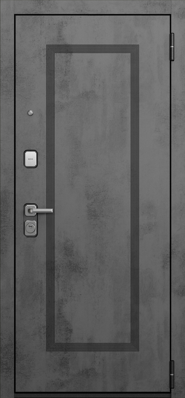 Повышенной надежности российская дверь c красивой декоративной панелью толщиной 10мм в цвете бетон серый. Прекрасно подойдет для установки в квартиру. Солидная модель, которая хорошо защитит и подчеркнет статус.