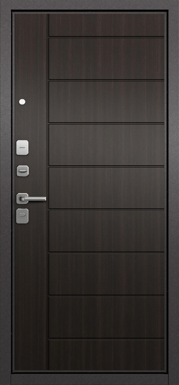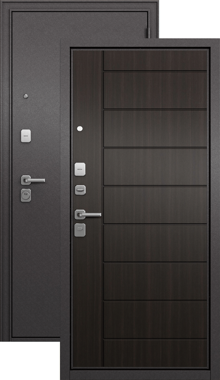 Имеет высокую прочность, благодаря толщине стали 1,5 мм. Оснащена двумя надежными замками, минимум один из которых имеет высокий третий класс взломостойкости по ГОСТ 5089-2003 и обладает повышенными охранными свойствами. Есть врезная броненакладка, защищающая цилиндровый замок от высверливания. Она утоплена в дверное полотно, поэтому ее практически невозможно сбить. Есть ночная задвижка — дополнительная защита от взлома. Никто не сможет зайти, вскрыв замок, когда вы дома.
