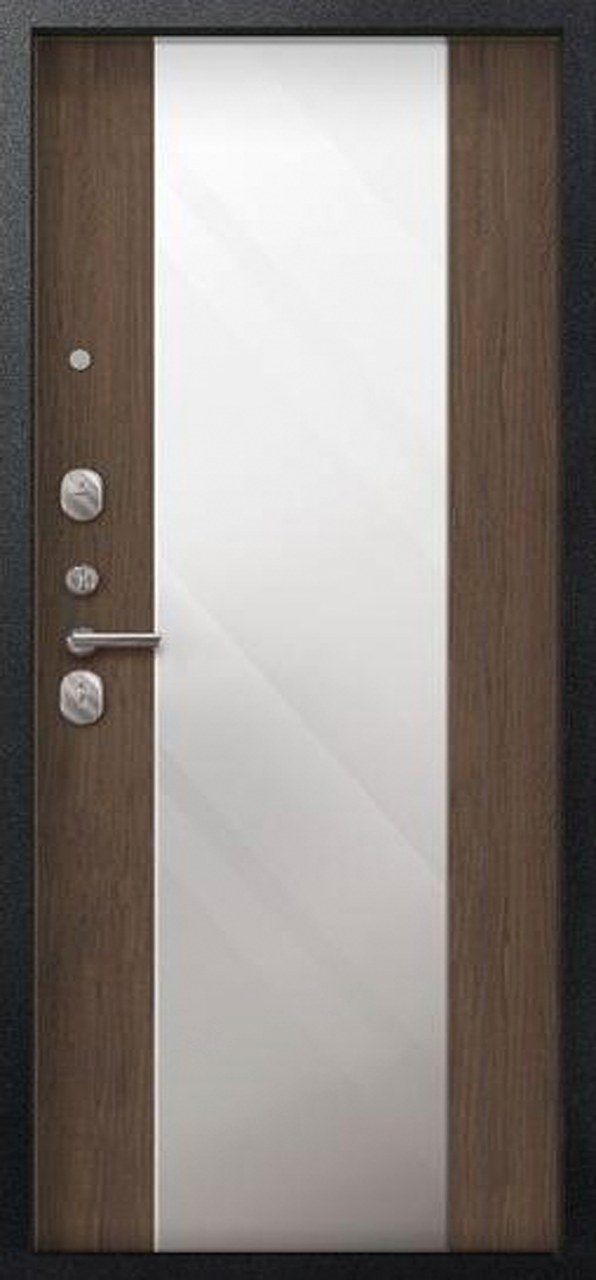 Качественная российская дверь с большим зеркалом на внутренней панели со стильной внешней отделкой муар черный. Прекрасно подойдет для установки в квартиру. Надежная модель, которая прослужит долгие годы.