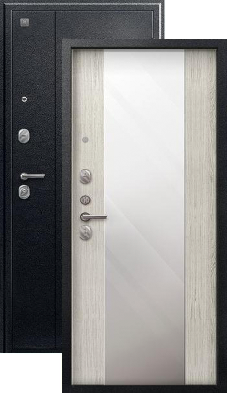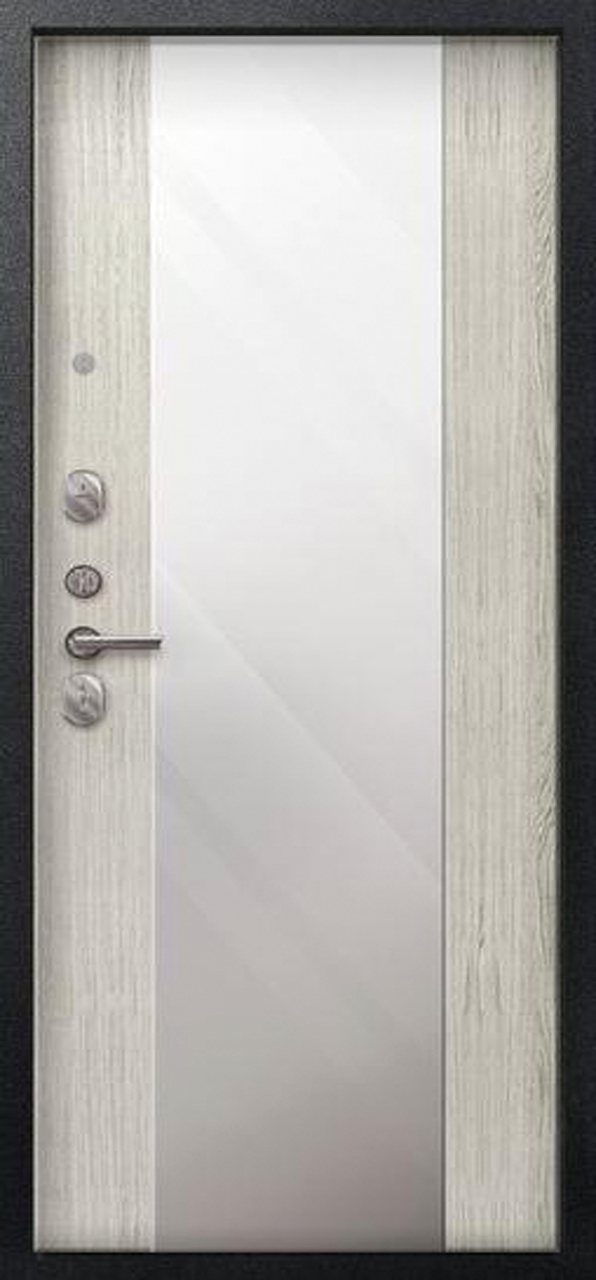 Теплая дверь входная Сезам V-04 зеркало (2025), 2 замка, 1 мм металл, (черный муар+полярный дуб)