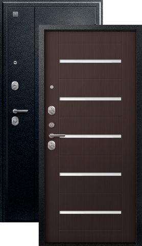 Качественная российская дверь со стильной внешней отделкой муар черный и красивой декоративной панелью толщиной 10 в цвете лиственница темная. Прекрасно подойдет для установки в квартиру. Надежная модель, которая прослужит долгие годы.