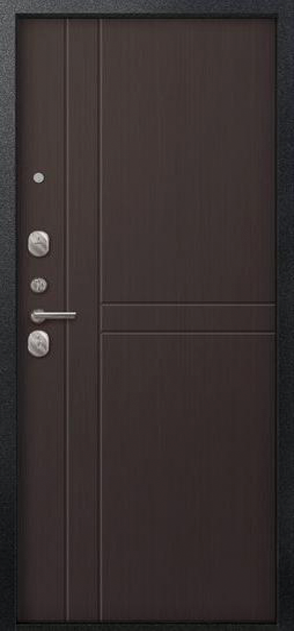 Качественная российская дверь со стильной внешней отделкой муар черный и красивой декоративной панелью толщиной 8 в цвете лиственница темная. Прекрасно подойдет для установки в квартиру. Надежная модель, которая прослужит долгие годы.