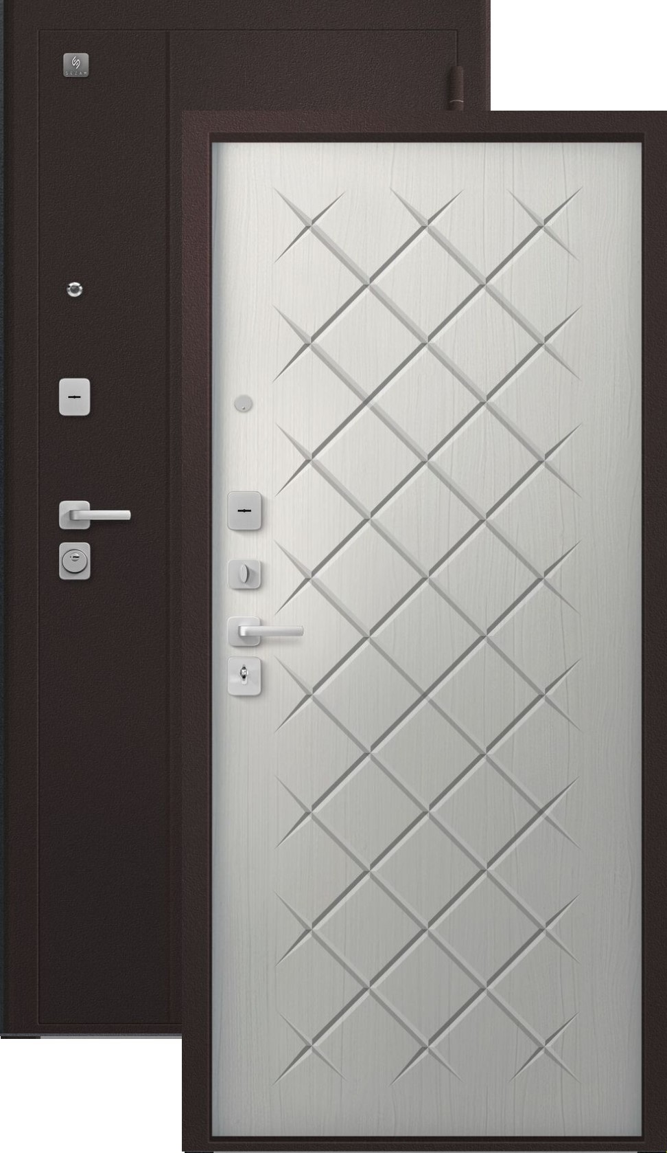 Дверь имеет хорошую прочность из-за толщины металла 1,4 мм. Оснащена двумя надежными замками, минимум один из которых имеет высокий третий класс взломостойкости по ГОСТ 5089-2003 и обладает повышенными охранными свойствами. Есть врезная броненакладка, защищающая цилиндровый замок от высверливания. Она утоплена в дверное полотно, поэтому ее практически невозможно сбить. Есть ночная задвижка — дополнительная защита от взлома. Никто не сможет зайти, вскрыв замок, когда вы дома.