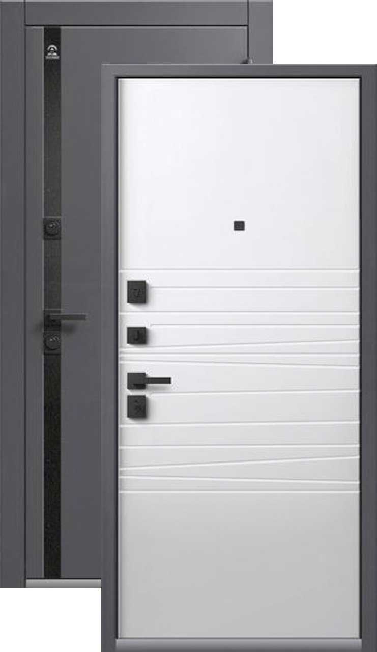 Повышенной надежности российская сейф-дверь со стильной внешней отделкой антрацит муар/кашемир графит и красивой декоративной панелью толщиной 13 в цвете кашемир белый. Прекрасно подойдет для установки в квартиру. Солидная модель, которая хорошо защитит и подчеркнет статус.