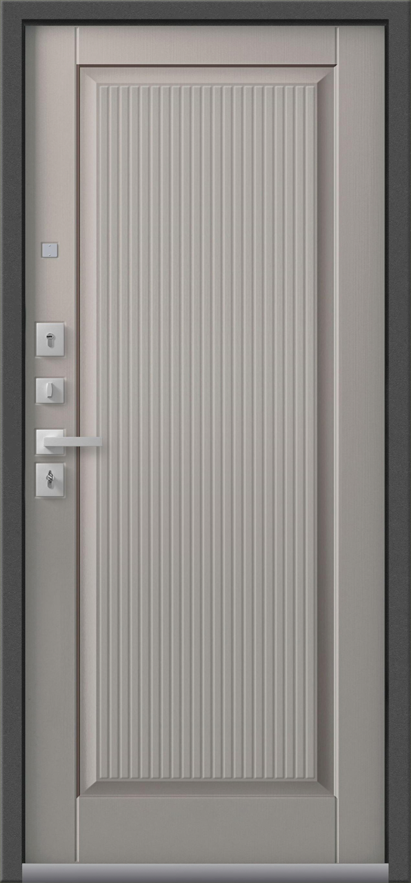 Повышенной надежности российская сейф-дверь со стильной внешней отделкой муар пепельный и красивой декоративной панелью толщиной 16 в цвете кашемир грей. Прекрасно подойдет для установки в квартиру. Солидная модель, которая хорошо защитит и подчеркнет статус.