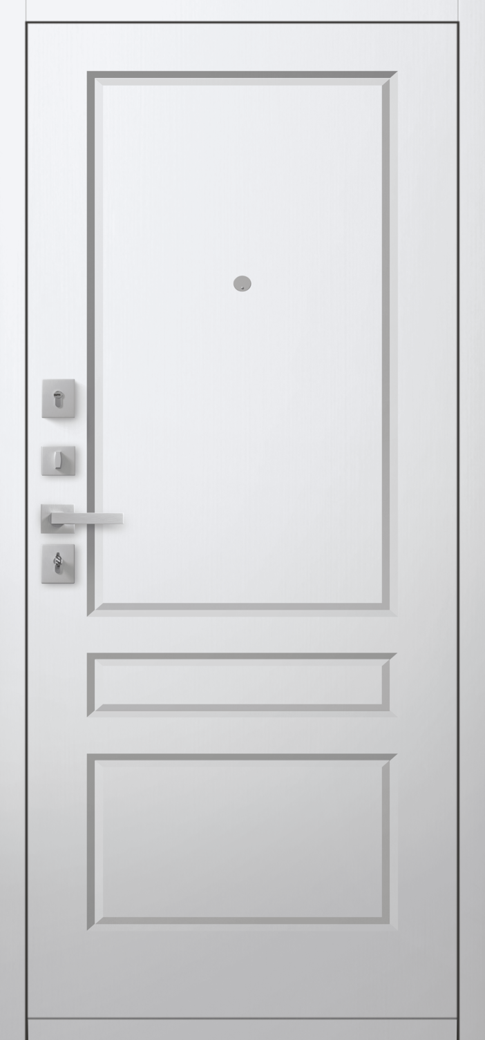Имеет очень высокую прочность, благодаря толстой стали 2 мм. Оснащена двумя надежными замками, минимум один из которых имеет высший класс взломостойкости по ГОСТ 5089-2003 (4 класс). Есть врезная броненакладка, защищающая цилиндровый замок от высверливания. Она утоплена в дверное полотно, поэтому ее практически невозможно сбить. Есть ночная задвижка — дополнительная защита от взлома. Никто не сможет зайти, вскрыв замок, когда вы дома.