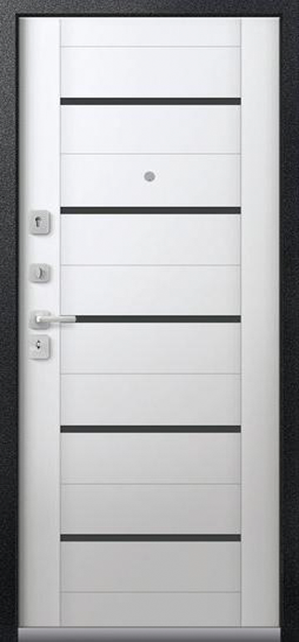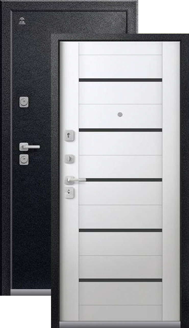Повышенной надежности российская дверь со стильной внешней отделкой муар черный и красивой декоративной панелью толщиной 16 в цвете сноу. Прекрасно подойдет для установки в квартиру. Солидная модель, которая хорошо защитит и подчеркнет статус.