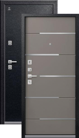Повышенной надежности российская дверь со стильной внешней отделкой муар черный и красивой декоративной панелью толщиной 16 в цвете кашемир базальт. Прекрасно подойдет для установки в квартиру. Солидная модель, которая хорошо защитит и подчеркнет статус.