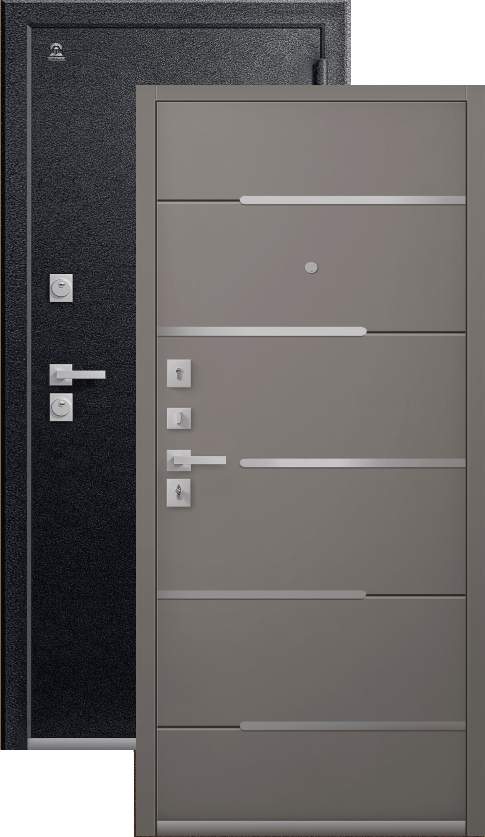 Имеет очень высокую прочность, благодаря толстой стали 2 мм. Оснащена двумя надежными замками, минимум один из которых имеет высший класс взломостойкости по ГОСТ 5089-2003 (4 класс). Есть врезная броненакладка, защищающая цилиндровый замок от высверливания. Она утоплена в дверное полотно, поэтому ее практически невозможно сбить. Есть ночная задвижка — дополнительная защита от взлома. Никто не сможет зайти, вскрыв замок, когда вы дома.
