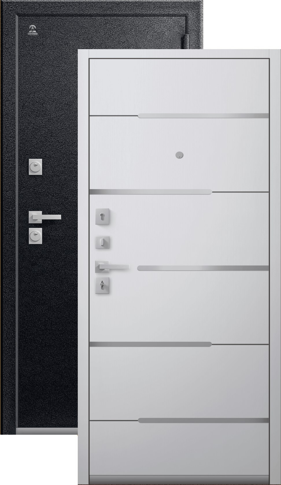 Имеет очень высокую прочность, благодаря толстой стали 2 мм. Оснащена двумя надежными замками, минимум один из которых имеет высший класс взломостойкости по ГОСТ 5089-2003 (4 класс). Есть врезная броненакладка, защищающая цилиндровый замок от высверливания. Она утоплена в дверное полотно, поэтому ее практически невозможно сбить. Есть ночная задвижка — дополнительная защита от взлома. Никто не сможет зайти, вскрыв замок, когда вы дома.