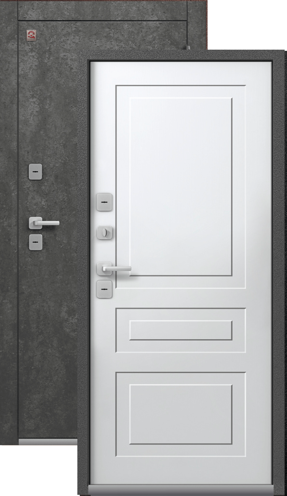 Терморазрыв - это материал, который расположен между внешней и внутренней частью дверного короба. Он препятствует промерзанию и исключает появления инея на внутренней части короба. В данном случае терморазрыв имеется и на полотне и на коробе. Такие модели рекомендуются к покупке в регионах с низкими температурами и резкими температурными перепадами.