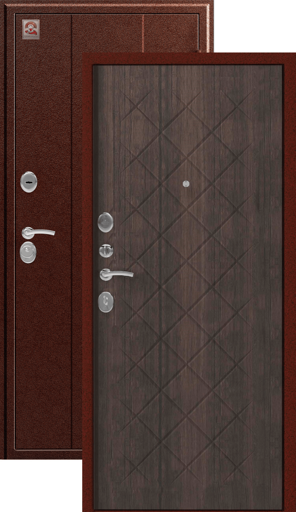 Легкая, не очень прочная дверь, имеет небольшую толщину металла 1 мм. Оснащена двумя надежными замками, минимум один из которых имеет высокий третий класс взломостойкости по ГОСТ 5089-2003 и обладает повышенными охранными свойствами. Есть врезная броненакладка, защищающая цилиндровый замок от высверливания. Она утоплена в дверное полотно, поэтому ее практически невозможно сбить. Есть ночная задвижка — дополнительная защита от взлома. Никто не сможет зайти, вскрыв замок, когда вы дома.