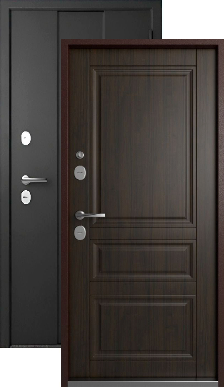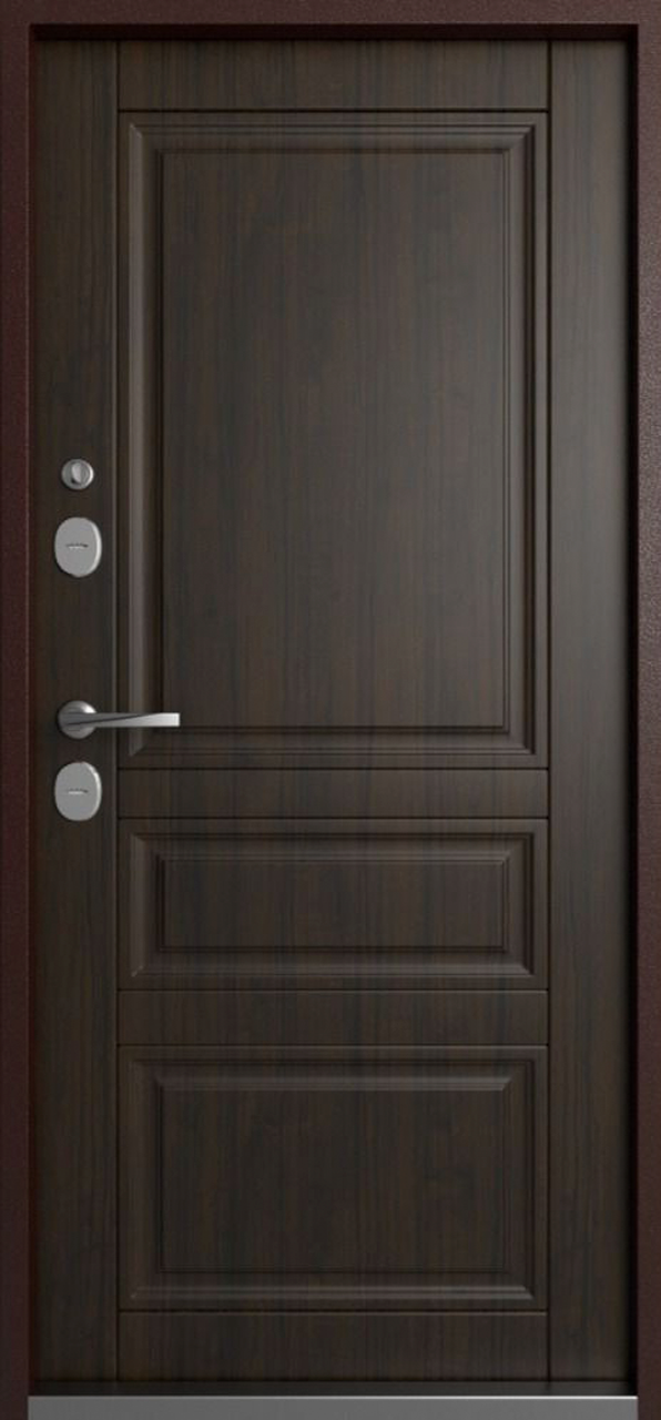 Толстая российская термодверь превосходно сохраняет тепло и обеспечивает надежную защиту от промерзания. Имеет двойной терморазрыв по полотну и коробу, проверена сибирскими морозами. Прекрасно подойдет для установки в частном доме, так как не пропускает холод и не обмерзает.