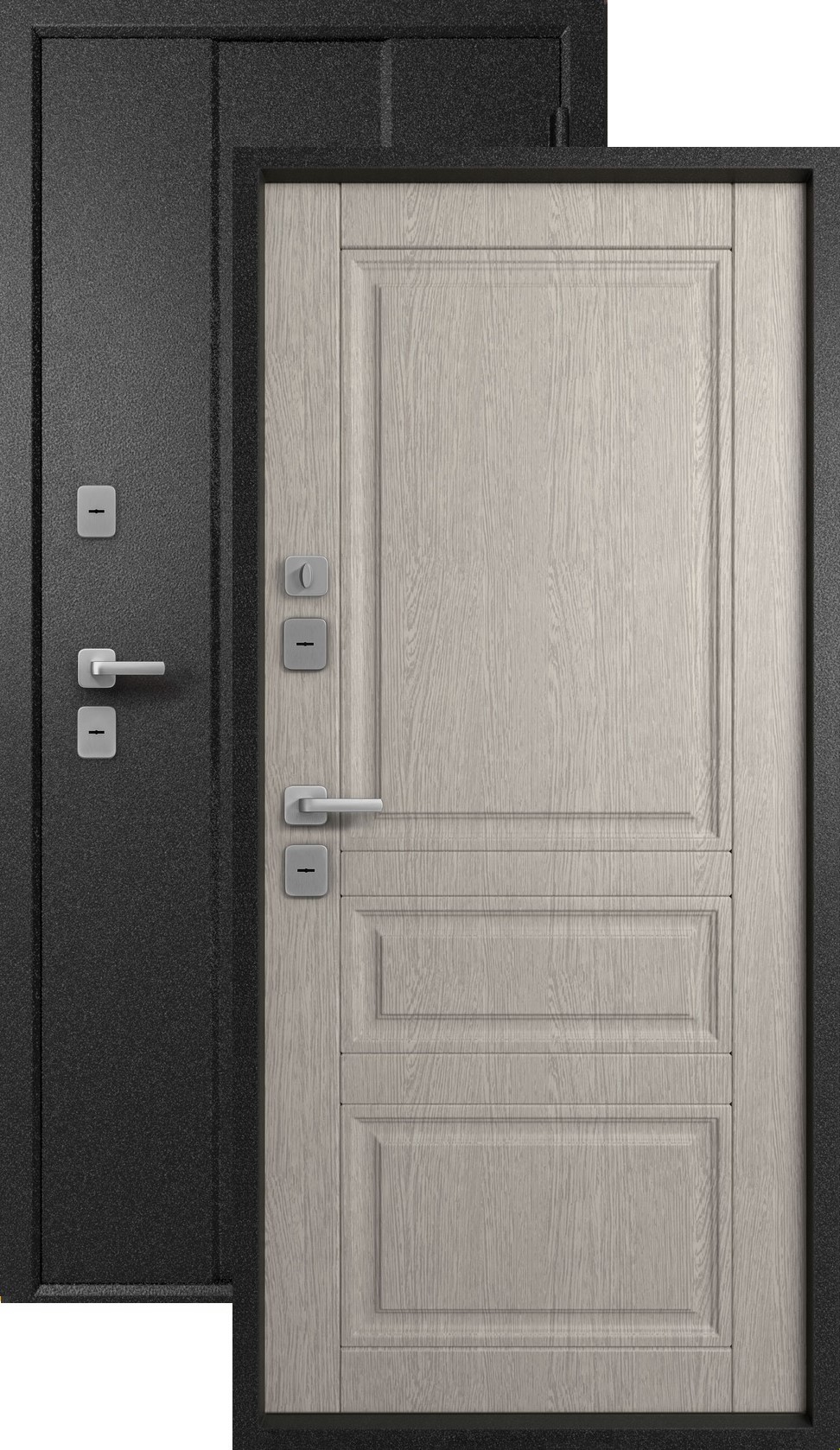 Эта модель защитит от звонкого цоканья каблуков и голосов соседей, которые поздно возвращаются домой, за счет толстого полотна 100 мм и хороших звукоизоляционных материалов (пенополистирол). тройной контур и шторки замков обеспечивают дополнительную звукоизоляцию.