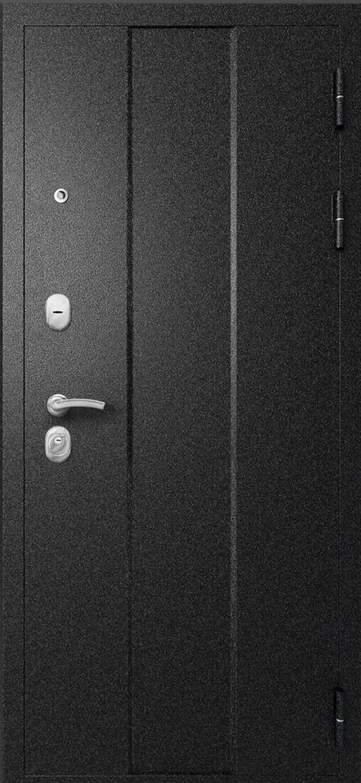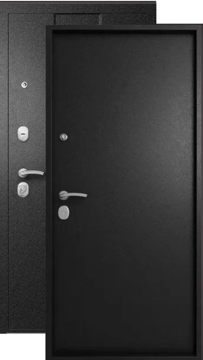 Легкая, не очень прочная дверь, имеет небольшую толщину металла 1 мм. Один замок обеспечивает минимальную защиту от проникновения. Есть ночная задвижка — дополнительная защита от взлома. Никто не сможет зайти, вскрыв замок, когда вы дома.