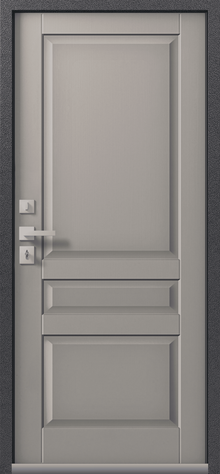Имеет очень высокую прочность, благодаря толстой стали 2 мм. Оснащена двумя надежными замками, минимум один из которых имеет высший класс взломостойкости по ГОСТ 5089-2003 (4 класс). Есть врезная броненакладка, защищающая цилиндровый замок от высверливания. Она утоплена в дверное полотно, поэтому ее практически невозможно сбить. Есть ночная задвижка — дополнительная защита от взлома. Никто не сможет зайти, вскрыв замок, когда вы дома.