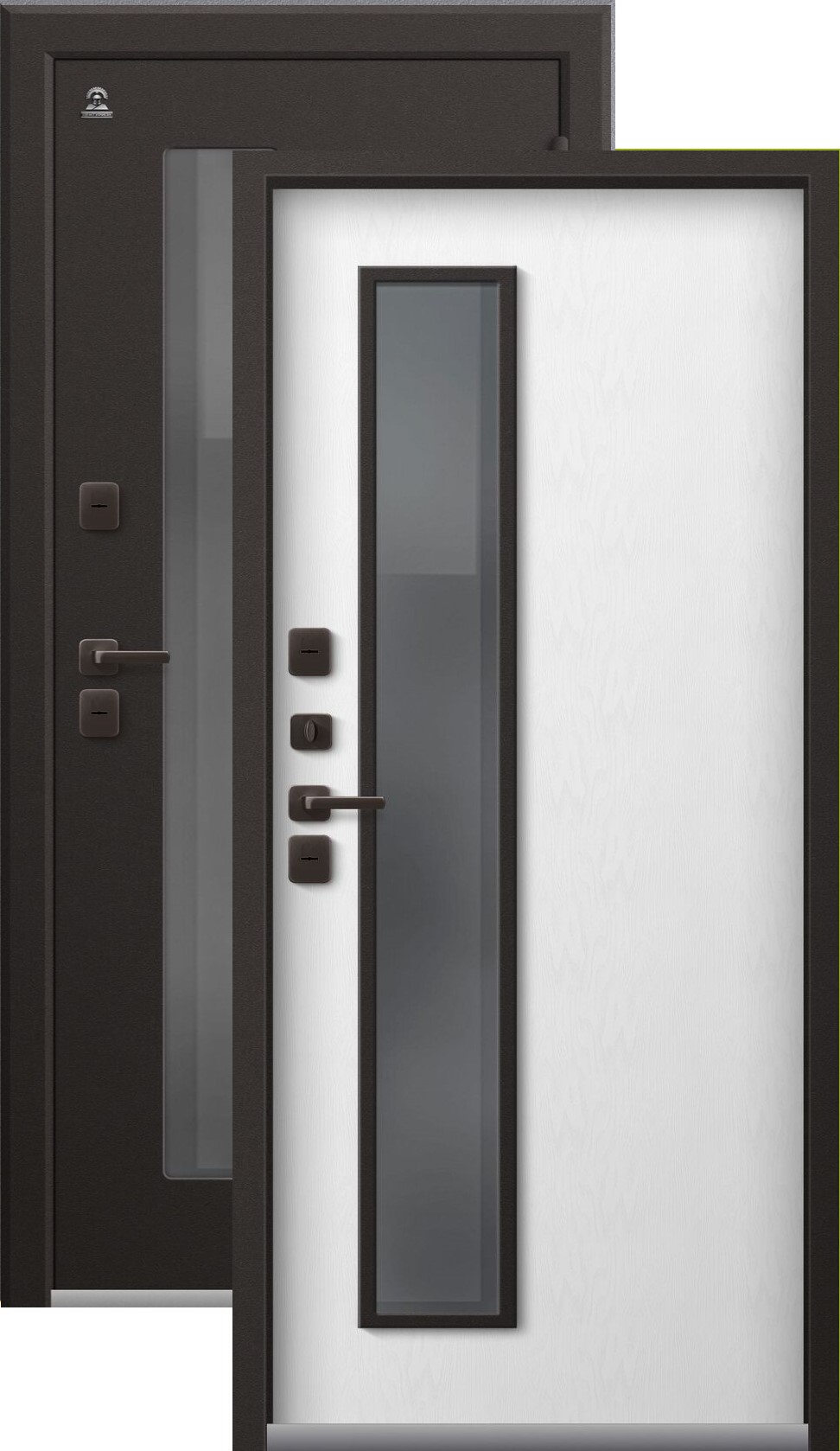 Терморазрыв - это материал, который расположен между внешней и внутренней частью дверного короба. Он препятствует промерзанию и исключает появления инея на внутренней части короба. В данном случае терморазрыв имеется и на полотне и на коробе. Такие модели рекомендуются к покупке в регионах с низкими температурами и резкими температурными перепадами.