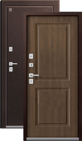 Толстая российская термодверь превосходно сохраняет тепло и обеспечивает надежную защиту от промерзания. Имеет двойной терморазрыв по полотну и коробу, проверена сибирскими морозами. Прекрасно подойдет для установки в частном доме, так как не пропускает холод и не обмерзает.