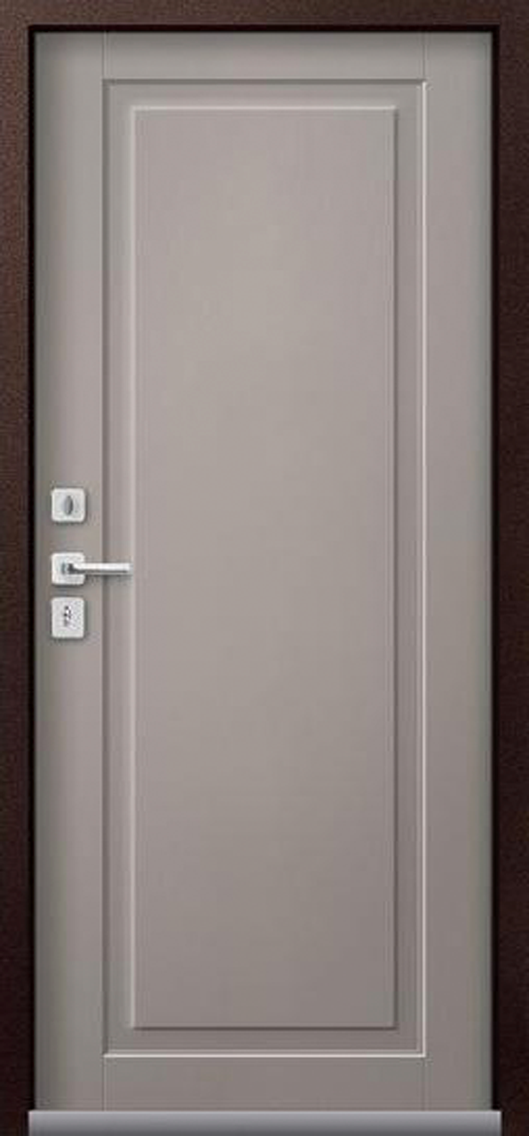Дверь имеет хорошую прочность из-за толщины металла 1,4 мм. Оснащена двумя надежными замками, минимум один из которых имеет высокий третий класс взломостойкости по ГОСТ 5089-2003 и обладает повышенными охранными свойствами. Есть врезная броненакладка, защищающая цилиндровый замок от высверливания. Она утоплена в дверное полотно, поэтому ее практически невозможно сбить. Есть ночная задвижка — дополнительная защита от взлома. Никто не сможет зайти, вскрыв замок, когда вы дома.