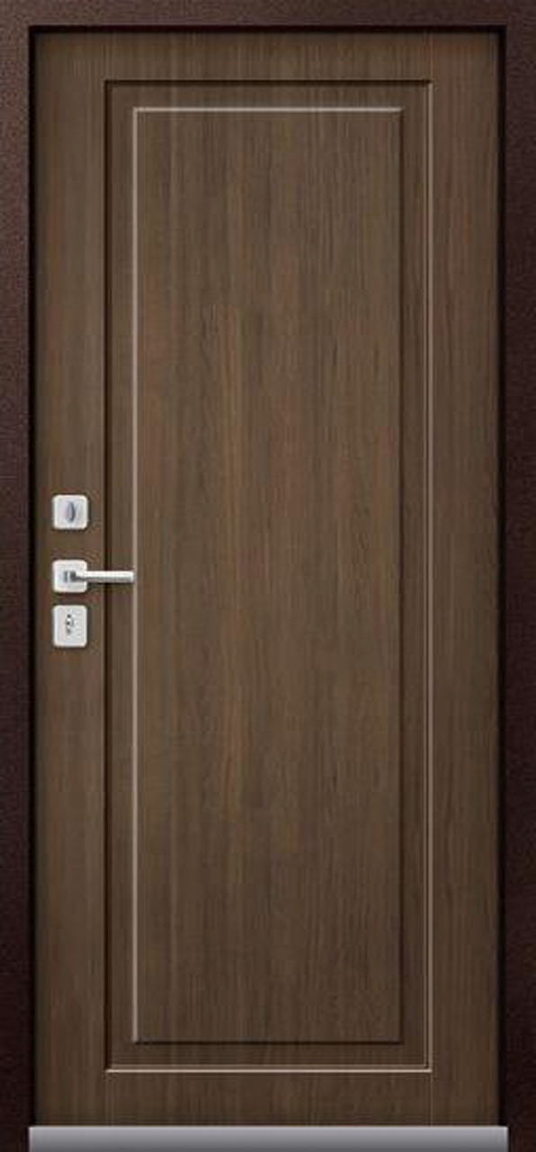 Дверь имеет хорошую прочность из-за толщины металла 1,4 мм. Оснащена двумя надежными замками, минимум один из которых имеет высокий третий класс взломостойкости по ГОСТ 5089-2003 и обладает повышенными охранными свойствами. Есть врезная броненакладка, защищающая цилиндровый замок от высверливания. Она утоплена в дверное полотно, поэтому ее практически невозможно сбить. Есть ночная задвижка — дополнительная защита от взлома. Никто не сможет зайти, вскрыв замок, когда вы дома.