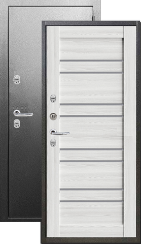 Толстая российская термодверь превосходно сохраняет тепло и обеспечивает надежную защиту от промерзания. Имеет двойной терморазрыв по полотну и коробу, проверена сибирскими морозами. Прекрасно подойдет для установки в частном доме, так как не пропускает холод и не обмерзает.